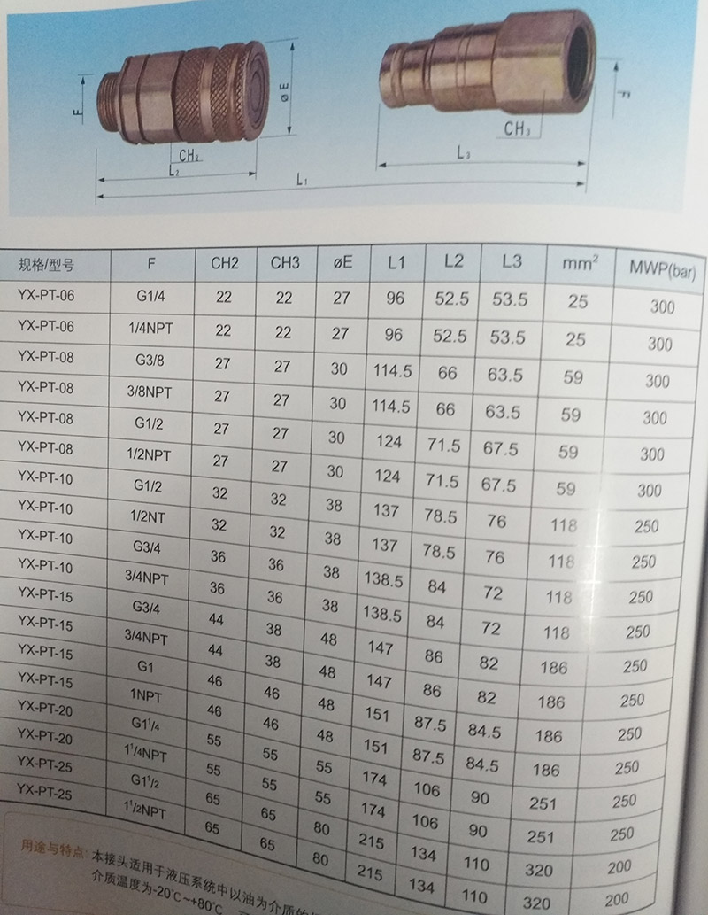 本接頭適用于以油為介質的場合。公稱壓力為350mpa,介質溫度為介質溫度為-20℃~+80℃,可用于油壓機械,瓦斯配管等。