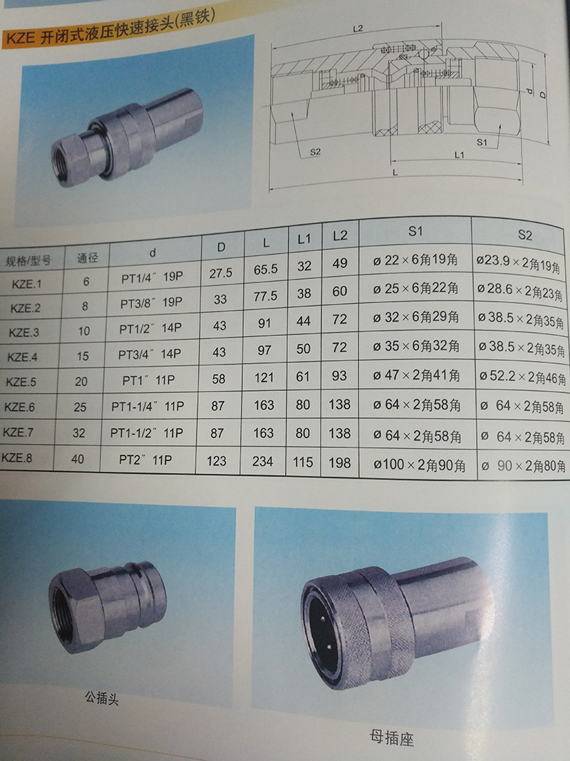 • 產品名稱: KZE開閉式液壓快速接頭(黑鐵)